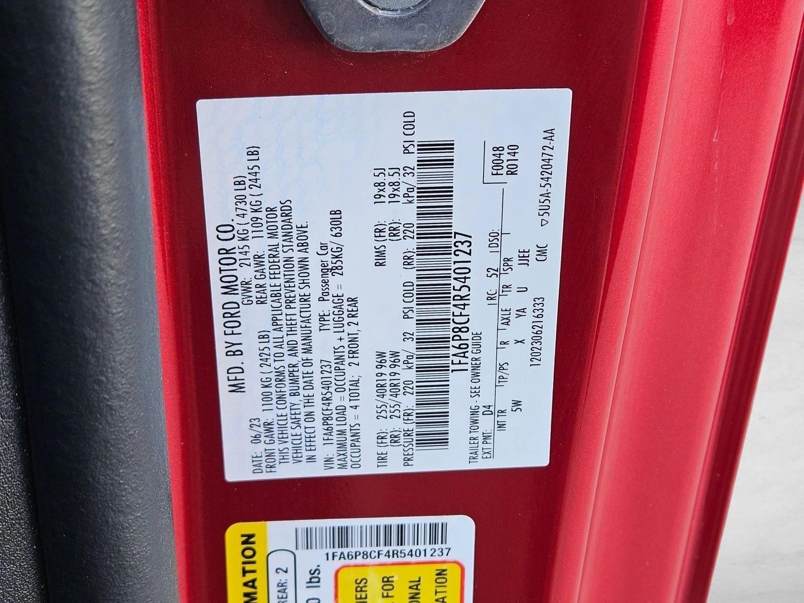 Looking for a clean, well-cared for 2024 Ford Mustang? This is it. This Ford includes: ENGINE: 5.0L TI-VCT V8 8 Cylinder Engine Gasoline Fuel *Note - For third party subscriptions or services, please contact the dealer for more information.* There's a level of quality and refinement in this Ford Mustang GT Premium that you won't find in your average vehicle. Just what you've been looking for. With quality in mind, this vehicle is the perfect addition to take home. Based on the superb condition of this vehicle, along with the options and color, this Ford Mustang GT Premium is sure to sell fast.